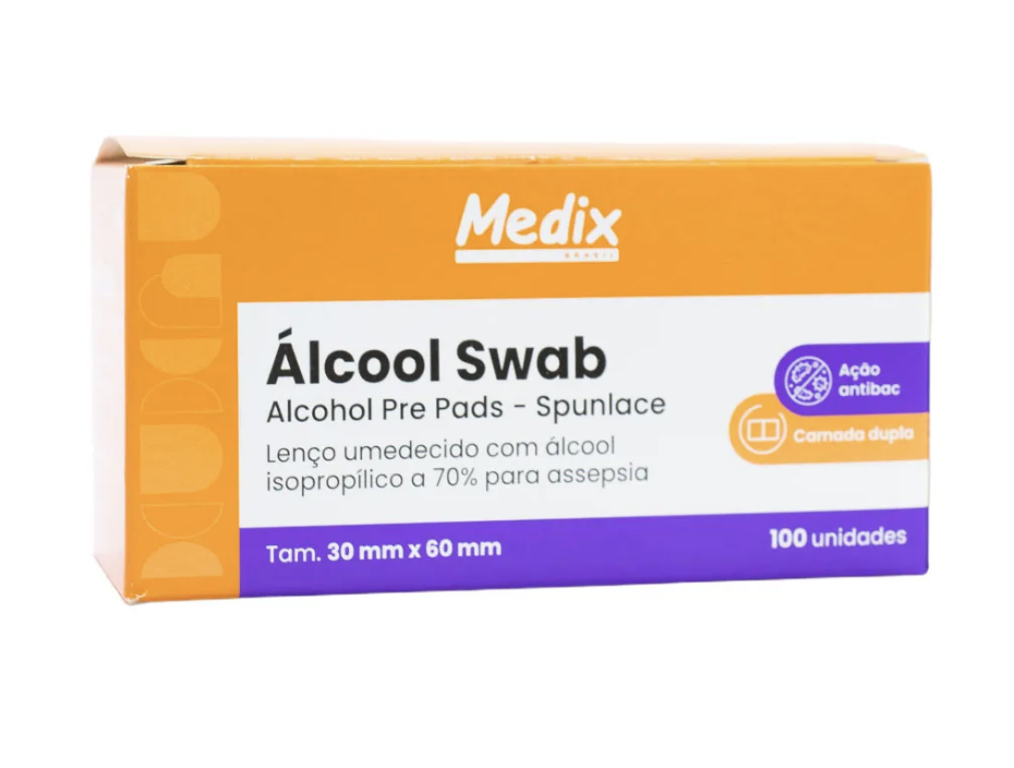 Os Álcool Swabs Medix com 100 unidades são ideais para higienização de pele antes de procedimentos médicos ou injeções, garantindo segurança, praticidade e assepsia. Produto descartável, fácil de usar e indispensável em clínicas, hospitais e cuidados domiciliares.