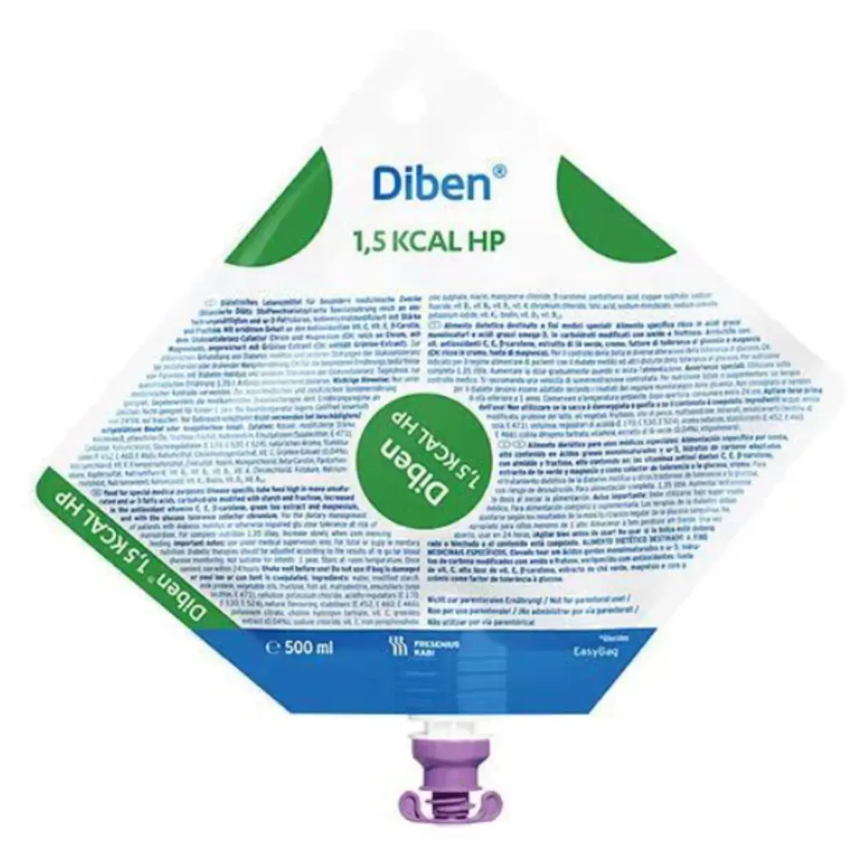 O DIBEN 1.5 Kcal HP 500ml Fresenius é uma fórmula nutricional hipercalórica e hiperproteica, desenvolvida para fornecer nutrição completa e concentrada a pacientes com necessidades aumentadas de energia e proteínas.