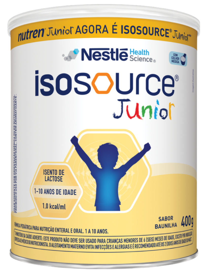 O ISOSOURCE JUNIOR 400G NESTLE, anteriormente conhecido como Nutren Júnior, é uma fórmula nutricional pediátrica desenvolvida pela Nestle para oferecer suporte completo à nutrição enteral e oral de crianças. Com uma densidade energética de 1.0 kcal/mL na diluição padrão, e enriquecido com TCM (Triglicerídeos de Cadeia Média) representando 25% dos lipídeos totais, este suplemento nutricional é ideal para suprir as necessidades energéticas e nutricionais específicas do público infantil. Sua formulação é totalmente isenta de lactose, tornando-o uma opção adequada para crianças com intolerância.