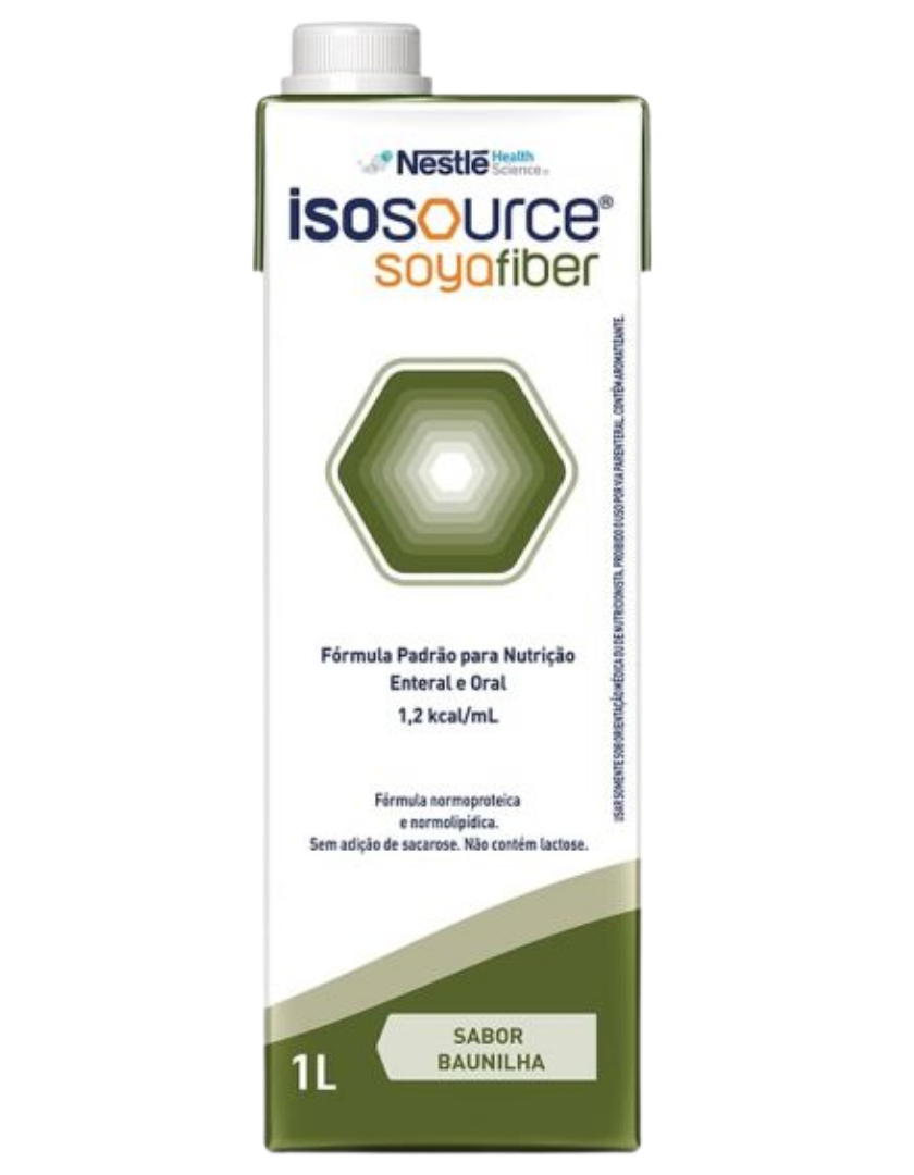 O ISOSOURCE SOYA FIBER 1L NESTLE é uma solução de nutrição enteral normocalórica com proteína de soja e fibras, ideal para dietas especiais.