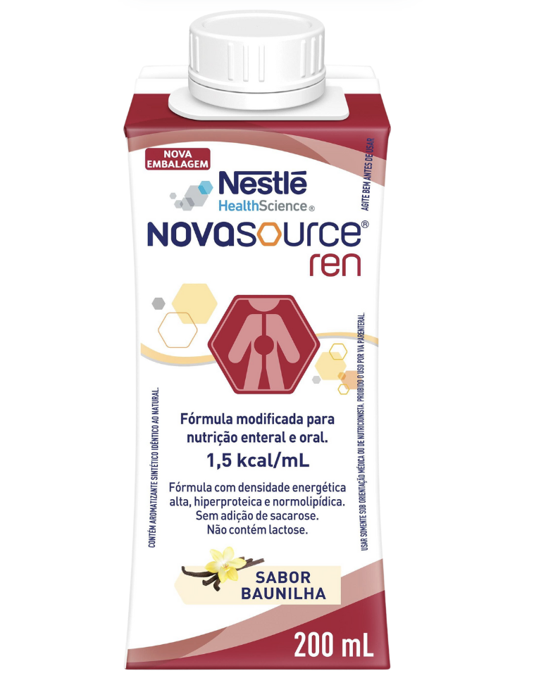 Novasource Ren é um alimento para suplementação de nutrição enteral ou oral, hipercalórico. Cada 1ml de Novasource Ren fornece 2,0 kcal.